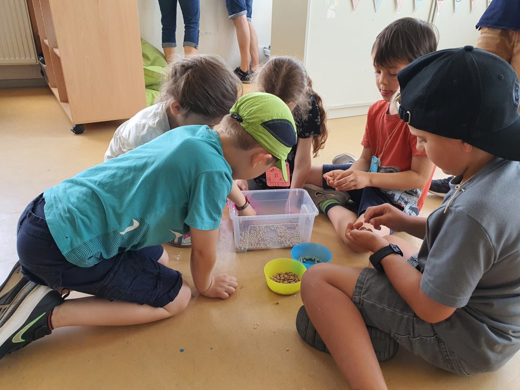 Unterdessen konnten alle Kinder 23 verschiedene Herausforderungen bestehen. Unter dem Motto „5×5 Challenges“ mussten 5er-Gruppen gebildet und in jeweils 5 Minuten lustige oder schwierige Aufgaben bewältigt werden. Da gab es zum Beispiel Memory, Wassertransport, Hütchenflip, Schlösser knacken oder Bällebahn. Es war darüber hinaus die größte Herausforderung, diese Aufgaben alle einmal zu versuchen.